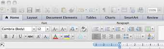 Eine der augenfälligsten Neuerungen ist die Multifunktionsleiste in Microsoft Office 2011 Academic. Über Karteireiter greift man auf die einzelnen Funktionen der Office-Anwendungen zu. Die aktuelle Office-Version von Outlook ist bei dieser Studenten-Version nicht enthalten.
